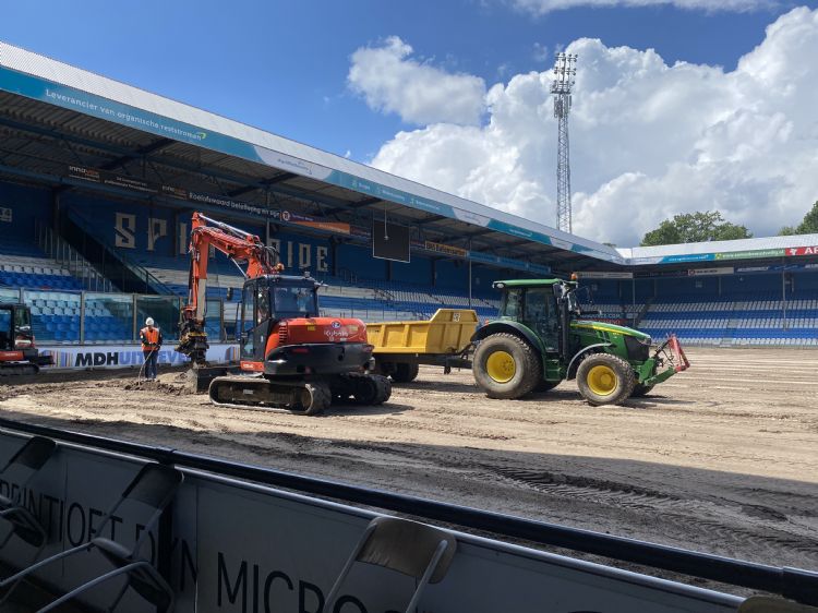 Het bedrijf Hofmeijer Voorst is de komende twee weken nog druk met de renovatie van het stadionveld van voetbalclub De Graafschap.