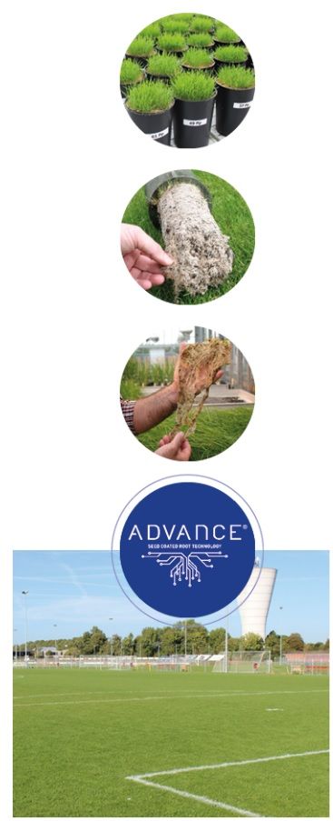 Omdat een coating groeibevorderend werkt en daarmee het gezaaide graszaad een ingebouwde voorsprong meegeeft, draagt de Advanta coating de naam Advance. Alle sportveldgrassen van Advanta zijn 100% gecoat om de zaadjes optimaal te ondersteunen in de eerste levensfase. Zo geeft Advance een gelijkmatige en betere kieming, meer wortelontwikkeling en scheutgroei en een hoger kiemingspercentage.