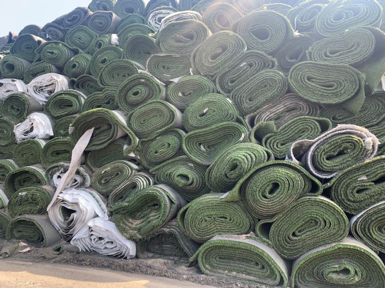 Het versleten kunstgras stapelt zich op