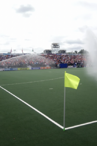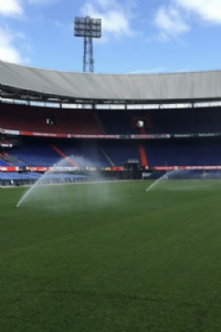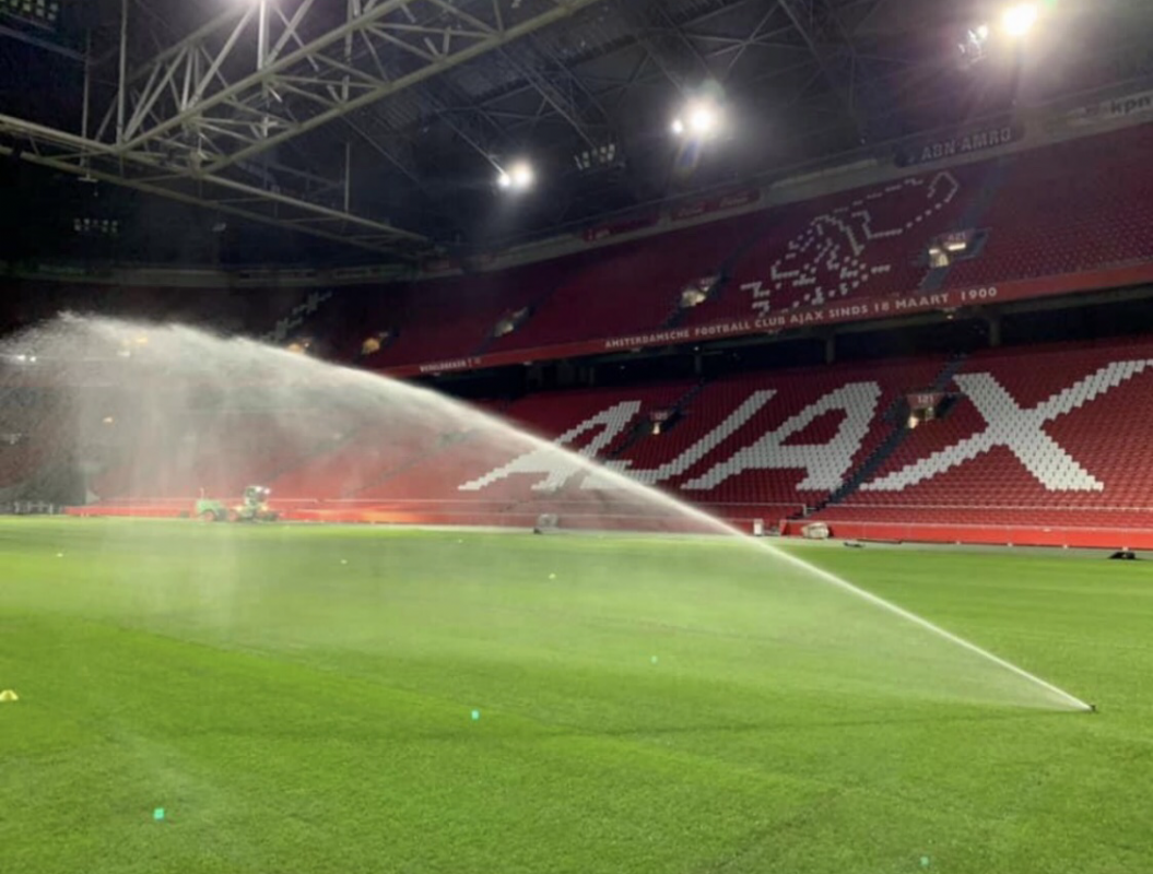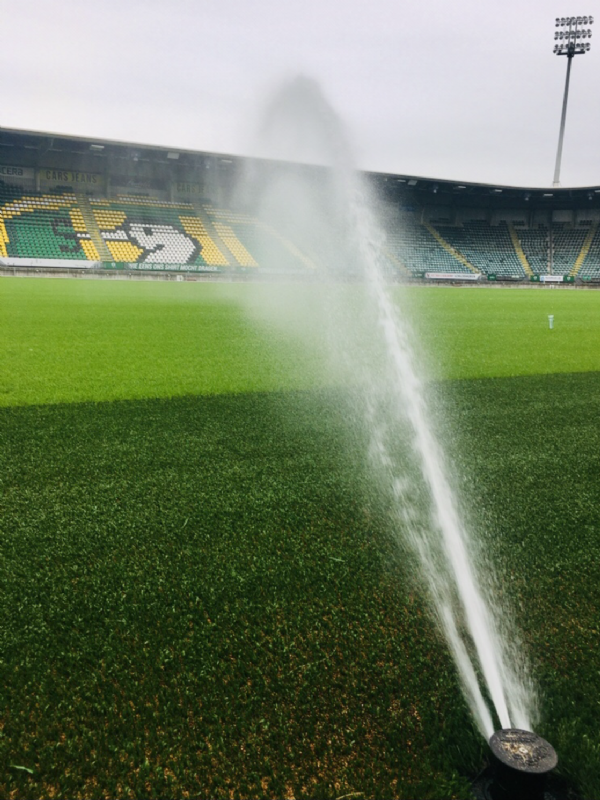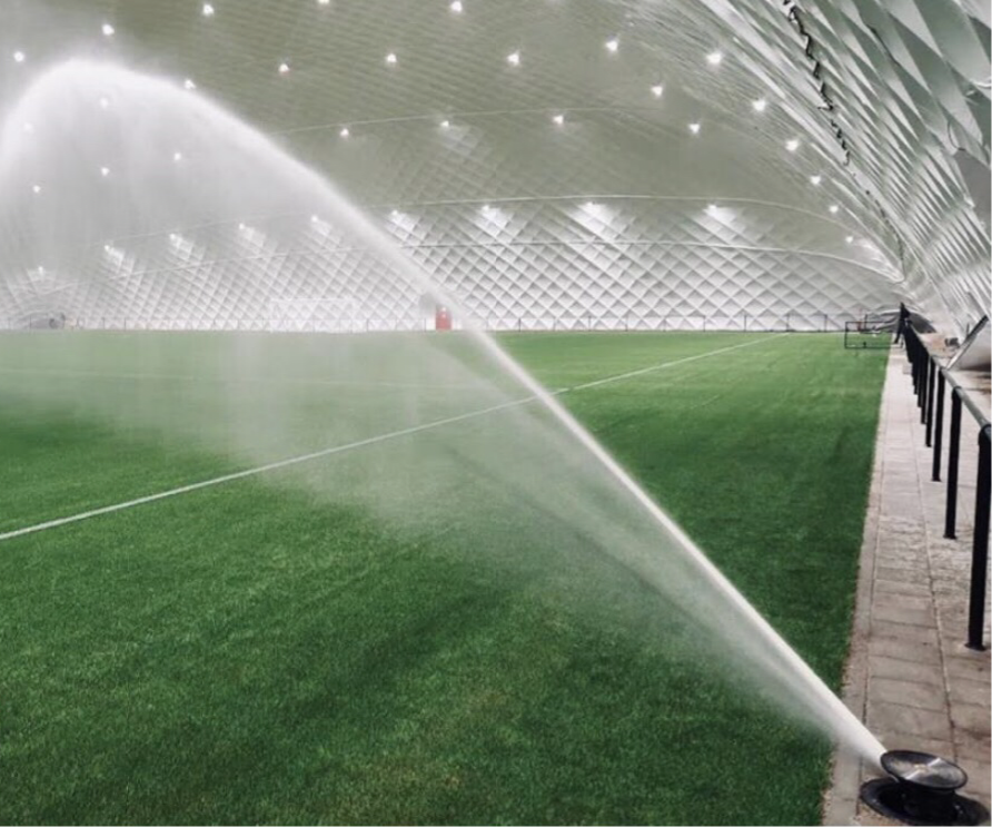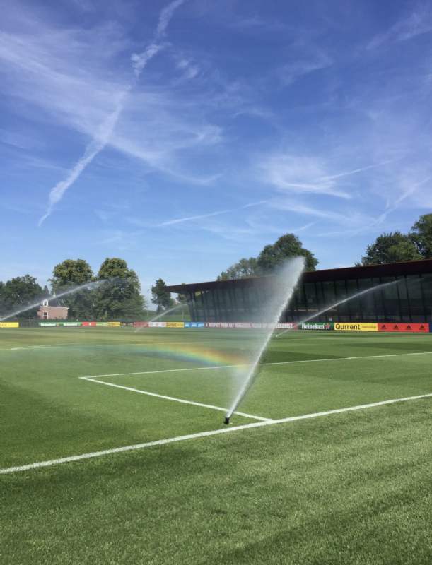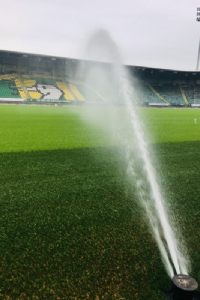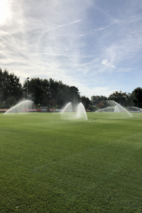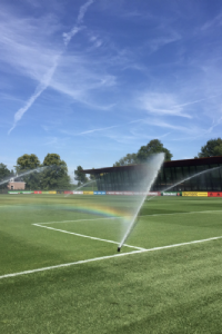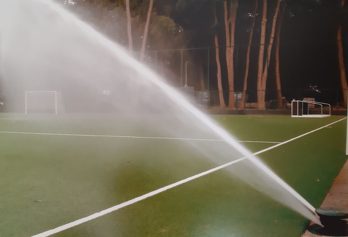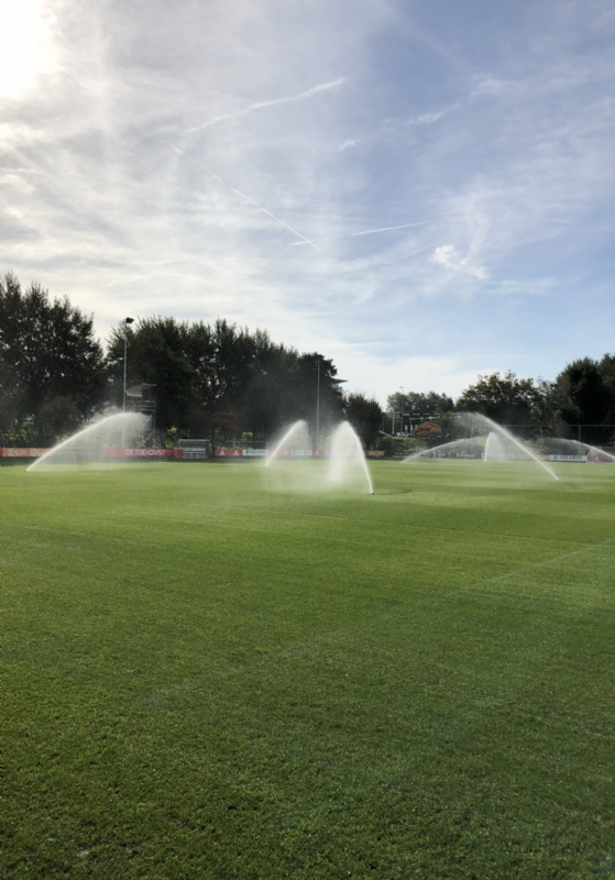De latere generatie sproeiers voor kunstgrasvelden, hier de Perrot-sproeier