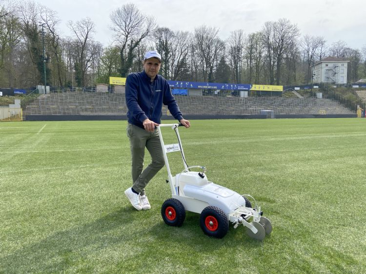 Selectline is leverancier van sportveldbelijning en belijningsmachines. Het bedrijf streeft naar eigen zeggen naar de levering van topkwaliteit. Dat geldt ook voor de service, zo verzekert accountmanager Dimitri Daeseleire. Profvoetbalclub KVC Westerlo kan daarover meepraten, in de persoon van terreinverzorger Geert Segers.