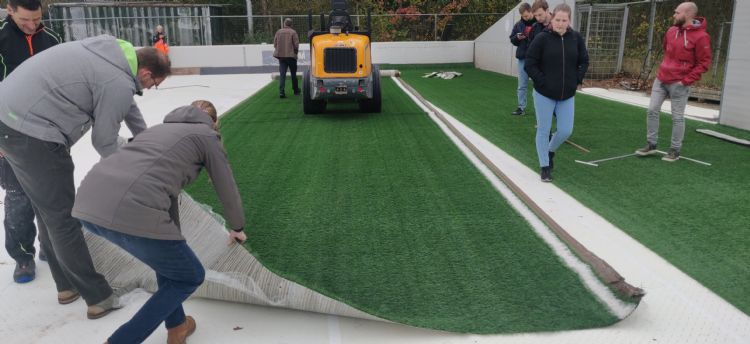 Opening biologisch afbreekbaar kunstgrasveld |