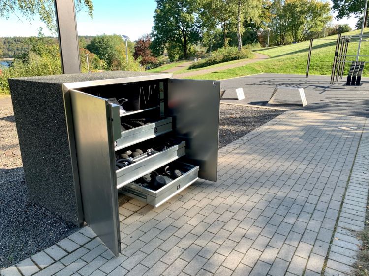 De SportBox is een opslagruimte voor fitness- en trainingsmaterialen die op verschillende plekken kan worden geplaatst. Gebruikers kunnen zich registreren via een app en door middel van een app & move-concept kunnen gebruikers de box openen, trainingen reserveren en oefeningen bekijken. Ook is het mogelijk om de SportBox uit te voeren met een RFID-sleutel. De SportBox is voorzien van in- en uitschuifbare lades en een zonnecel met oplaadmogelijkheden (via USB). De original en de light uitvoering zijn uitgerust met diverse fitness- en trainingsmaterialen. De inhoud kan zelf worden samengesteld en wordt met een intelligent camerasysteem beveiligd tegen diefstal en onbevoegd gebruik. Bij de SportBox - XS is er ruimte voor kleine materialen, zoals een voetbal, basketbal of tafeltennisbatjes. Deze is optioneel ook leverbaar op een standaard. De SportBox - XS-padel is speciaal ontworpen voor padelrackets en ballen.