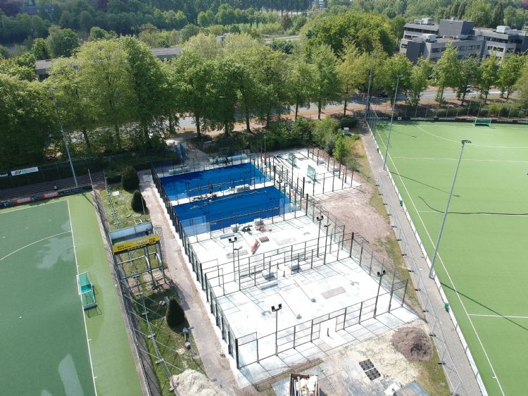 Op het sportcomplex was nog voldoende ruimte tussen twee hockeyvelden om de eerste vijf padelbanen te realiseren. Volgens Reinds was het geen bijzonder ingewikkelde klus. 'Na het grondwerk is een waterdoorlatende fundatie gemaakt met daarbinnen een ringfundatie. Toen deze werkzaamheden waren afgerond, zijn de kooien geplaatst met daarbinnenin de kunstgrasmat.' Domo Sports Grass biedt klanten, zoals hierboven vermeld, twee opties als het gaat om padelkooien. Beide typen zijn goedgekeurd door NOC*NSF. Deze kooien worden voorzien van een Domo World Padel PE-F-kunstgrasmat. Deze mat is speciaal ontwikkeld voor de World Padel Tour. Push koos voor de 'classic'. De vijf banen zijn al dit voorjaar opgeleverd. De start van de tweede fase, met vier padelbanen, is afhankelijk van de renovatie van de kantine, vertelt Reinds. 'Zodra deze werkzaamheden zijn afgerond, kunnen we beginnen met de tweede fase. De eerste vijf banen worden zeer intensief gebruikt door leden en gebruikers van buiten.'