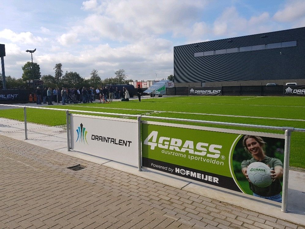 Op het terrein zijn elf zogenoemde plots gerealiseerd in samenwerking 4Grass/Hofmeijer Voorst, een bedrijf waarbij het optimaliseren van natuurgras ook hoog in het vaandel staat. Molenaar: 'Met elkaar willen wij natuurgras nog beter krijgen, zodat je geen kunstgrasveld meer nodig hebt.' Er zijn in totaal 11 plots met verschillende afmetingen gerealiseerd. De opbouw van de plots is verschillend. Zo is er een met een 'ideale opbouw', een met een klei opbouw, een met een zanderige opbouw en tot slot een met hybridegras. De helft is voorzien van DrainTalent en de andere helft niet, zodat de verschillen inzichtelijk gemaakt kunnen worden aan de hand van de te verzamelen data. 'Daarnaast is dit terrein natuurlijk een mooie showcase waar we belangstellenden kunnen rondleiden', verduidelijkt Molenaar.
