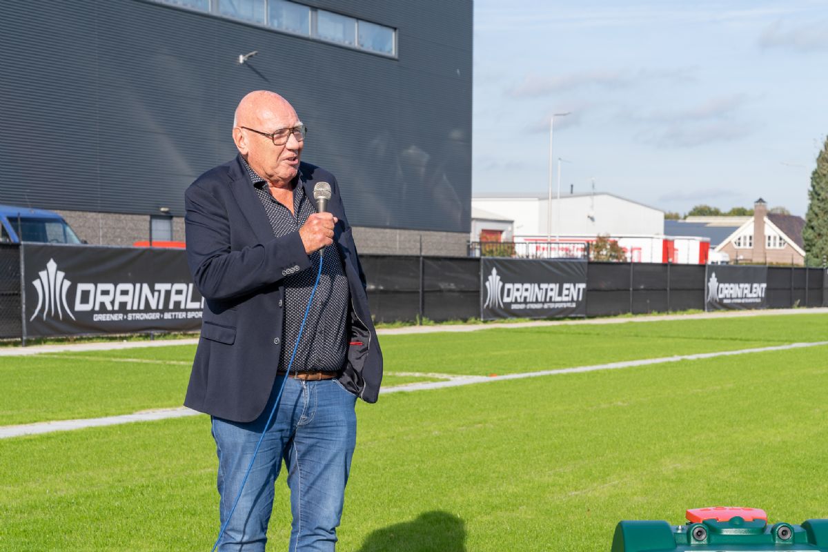 'Het was een geslaagde opening waarbij Jansma anekdotes vertelde over modderige velden uit het verleden en duidelijk maakte dat ook hij een voorstander is van voetbal op echt gras', blikt Rudolf Molenaar van DrainTalent terug.