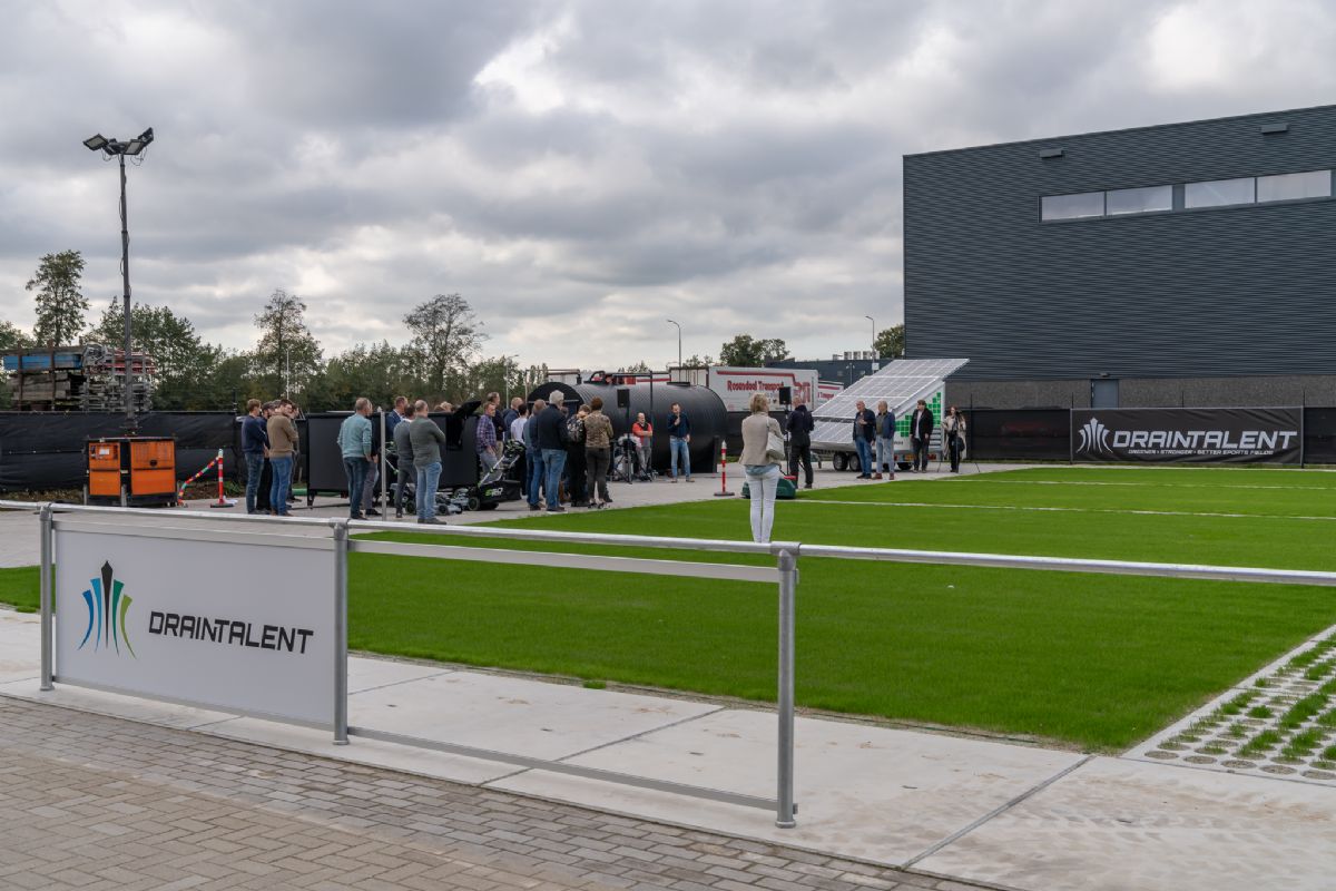 Met DrainTalent is de kans op een modderveld vrijwel nihil. Het ingenieuze drainagesysteem zorgt er namelijk voor dat het vochtgehalte van de bodem onder de grasmat 24/7 geregeld kan worden. Dit betekent ook dat bij hevige hoosbuien overtallig water snel afgevoerd kan worden. 'Velen zijn al overtuigd van de werking, maar er is ook nog een grote groep die ons systeem weliswaar interessant vindt, maar eerst hard bewijs wil zien. Het nu geopende innovatiecentrum moet daarvoor gaan zorgen', vertelt Molenaar. Verder noemt hij de opening van het innovatiecentrum 'een belangrijke stap in het volwassen worden' van zijn bedrijf.