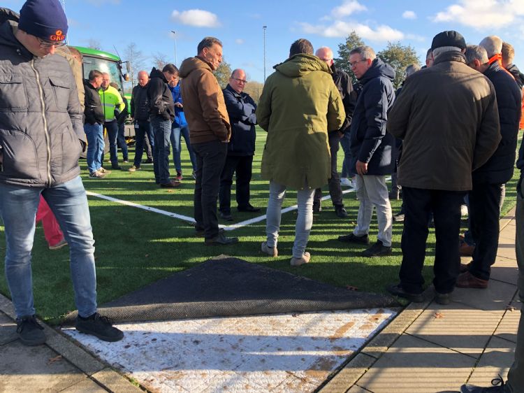 Anticiperend op het verbod op rubber infill is ook Tarkett Sports bezig met de ontwikkeling van non-infillvelden. Om belangstellenden bij te praten over de ontwikkelingen en over de ervaring met pilotvelden, was er eind november een zogenoemde praktijkdag bij voetbalvereniging RKVV Emplina in Empel, gemeente 's-Hertogenbosch.