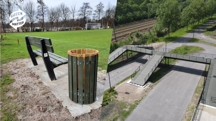 GreenMatter wil een brug slaan naar een volledig circulaire (sport)omgeving. Dit is inmiddels letterlijk gebeurd, en wel door de aanleg van een grote fietsbrug met gripstrips op sportpark Elsenburg in de gemeente Rijswijk. Het sportpark wordt grondig vernieuwd. Samen met de Rijswijksche Hockey Club (RHC), de Rijswijkse Wielrenvereniging De Spartaan en de Fietscrossclub Rijswijk en onder begeleiding van B.A.S. Begeleiding en Advies Sportterreinen, ontwikkelt de gemeente de locatie tot een hoogwaardig, duurzaam en multifunctioneel sportpark. Uniek aan deze brug is dat hij bestaat uit de dekplanken van GreenMatter, vervaardigd uit gerecycled kunstgras. Het versleten sportveld komt dus in een andere gedaante terug. Dit project is een mooi voorbeeld van de manier waarop de gemeente Rijswijk afval uit kunstgrasvelden laat terugkomen op een nuttige en circulaire wijze!