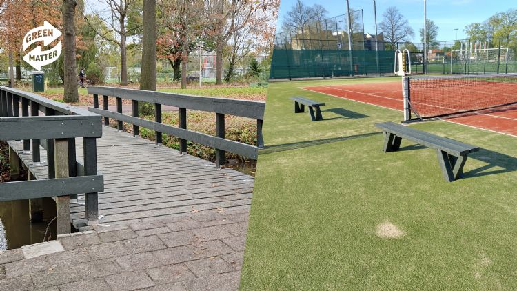 Het Radboud Sportcentrum is een mooi voorbeeld van het gebruik van verschillende duurzame oplossingen rondom een universiteit. Wie een rondje maakt over het Sportcentrum van de Radboud Universiteit in Nijmegen, zal veel GreenMatter-producten tegenkomen. Voor deze universiteit is duurzaamheid een belangrijk speerpunt, voor de korte én lange termijn. Marco van Beuningen denkt als coördinator beheer sportfaciliteiten graag mee over de vraag hoe we met elkaar een duurzame sportsector kunnen realiseren. Zo kwam hij op het idee om voor de tennisbanen mobiele zitbanken van gerecycled kunstgras te laten maken door GreenMatter. Na het maken van een aantal ontwerptekeningen kon GreenMatter de mobiele zitbanken uiteindelijk leveren op de tennisbanen van het Radboud Sportcentrum. Zo werd er een mooi nieuw product toegevoegd aan het leveringsprogramma. Inmiddels zijn deze banken op veel meer locaties geplaatst, zoals bij padelbanen, hockeyvelden en basketbalcourts. Naast de twaalf tennisbanen beschikt de universiteit ook over twee voetbalvelden, die voorzien zijn van GreenMatter-kantplanken en -borstelmatten. Met deze producten neemt de Radboud Universiteit niet alleen haar verantwoordelijkheid met betrekking tot de zorgplicht, maar draagt ze ook actief bij aan het reduceren van de kunstgrasafvalberg. Na het sporten kunnen de studenten plaatsnemen aan picknicktafels van gerecycled kunstgras op het terras.