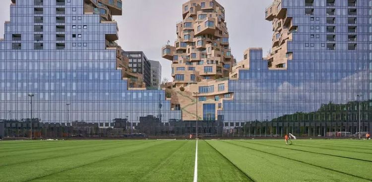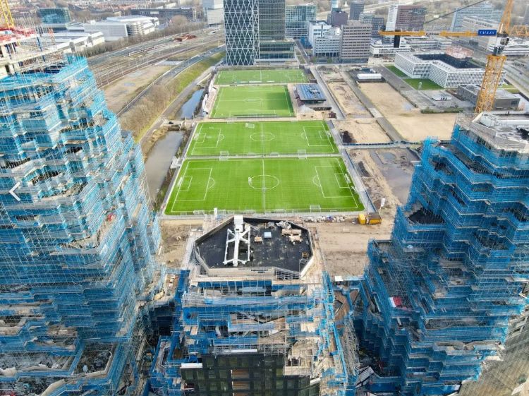 Mooi he? Een uniek sportpark op de duurste grond van Nederland. 1 veld op een parkeerkelder zonder dat het parkeerdak doorboort is met afvoerleidingen. Alle velden hebben hun eigen gebruiksdynamiek dus ook de technische specificatie van kunstgras en shockpads hierop aangepast. Van veld tot hekwerken en verlichting etc van de hoogste kwaliteit.