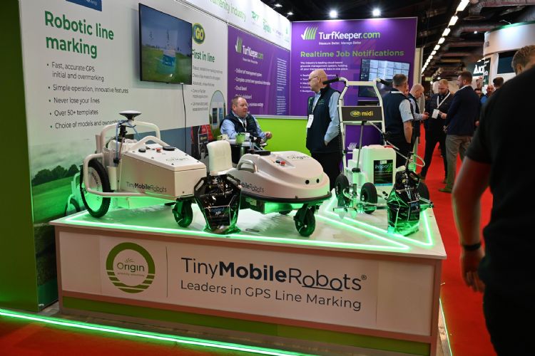 In het greenkeeper-walhalla dat Engeland heet, is natuurlijk weinig ruimte voor robots. Dat wil echter niet zeggen dat ze er niet waren op de beurs. Het Belgisch-Japanse Belrobotics Yamabiko heeft nu ook zijn maaiers voorzien van gps-rtk (rtk staat voor real time kinematic). De maaiers kunnen daardoor ook banen en zelfs logo's uitmaaien in de baan. De installatie van een perimeterdraad kan achterwege blijven en het is mogelijk om in dezelfde tijd meer gras te maaien. De nieuwe techniek werkt met een vaste ontvanger, die op het complex geïnstalleerd wordt. Deze communiceert met verschillende satellieten en is daarmee in staat om te maaien met een nauwkeurigheid van 2 cm.