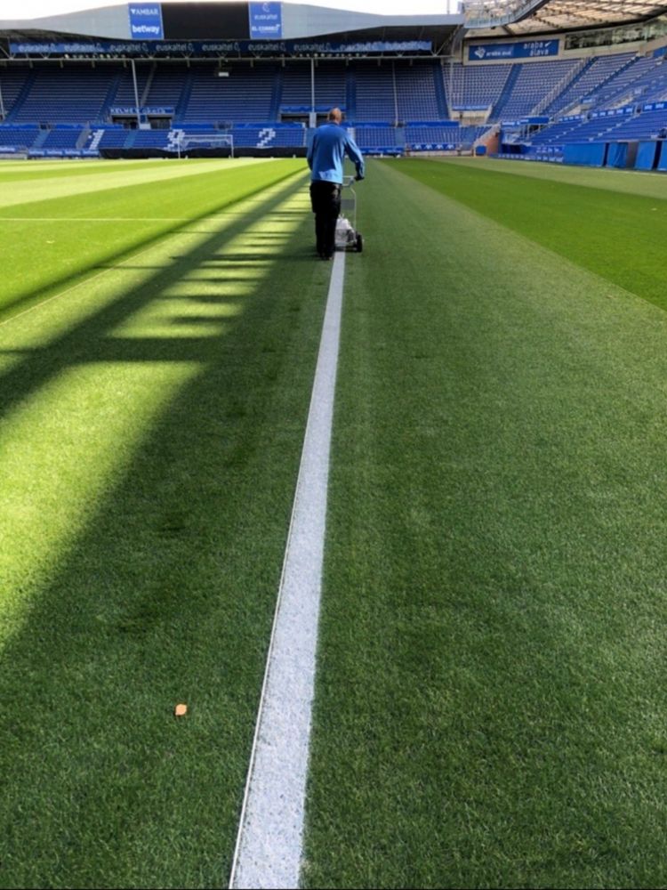 Broos treedt op als nationaal en internationaal accountmanager en staat met Lumiforte regelmatig op binnen- en buitenlandse beurzen. Op het moment van het interview heeft hij nog een jetlag; hij is zojuist teruggekeerd uit Australië en Nieuw-Zeeland, waar Lumiforte zijn partnernetwerk heeft uitgebreid. 'Bij Lumiforte staat een duurzame, persoonlijke relatie met de klant centraal. Daarom kiezen wij bewust met wie we willen samenwerken. We bezoeken onze partners meerdere keren per jaar, naargelang hun behoefte. Uiteraard onderhouden we ook contact met onze klanten per videoverbinding, maar een persoonlijk bezoek, waarbij we elkaar in de ogen kunnen kijken en de hand schudden, vinden we toch het waardevolst', vertelt Broos. 'We willen naast de klant staan en snel kunnen inspelen op de lokale marktvraag.' Die lokale marktvraag kan nogal verschillen. Zo is het niveau van het sportveldonderhoud in Nederland gemiddeld hoog, volgens Broos, en men is er inmiddels gewend aan belijnen met een kant-en-klare coating. In Polen werken veel fieldmanagers nog met kalk. 'Een kant-en-klare coating is voor hen nog een stap te ver; zij werken liever met een concentraat-coating', legt hij uit. 'Elk land heeft zijn eigen productbehoeften. Dat kan ook gaan om verschillende kleur- of coatingsamenstellingen.'