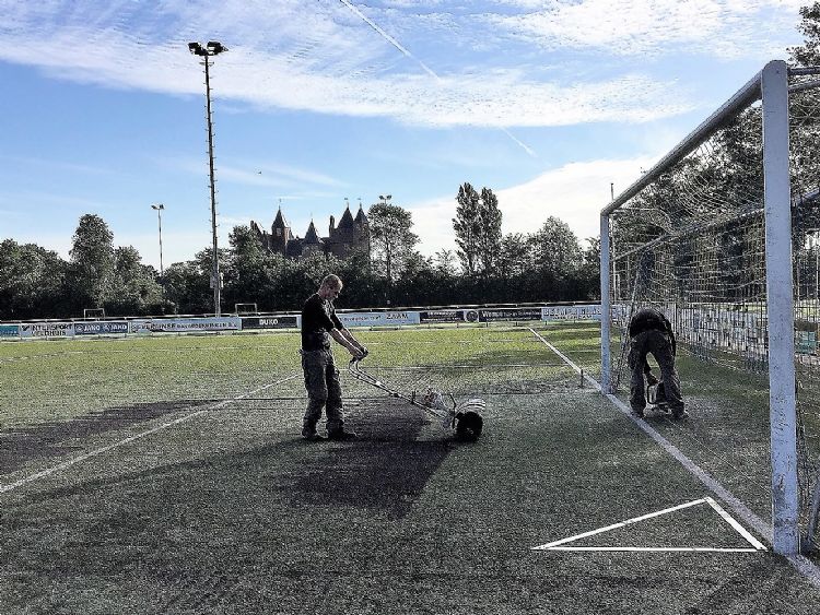 Een van de moeilijkheden bij deelvervanging is volgen hem het helemaal schoon krijgen van de mat. Je moet zien te voorkomen dat infill op plekken belandt waar je het niet wilt hebben en ook moet alles goed droog zijn om te kunnen lijmen. 'Mijns inziens is het pleksgewijs vervangen van een kunstgrasmat een noodoplossing. Er zijn altijd verschillen tussen de oude en de nieuwe mat. Dat is niet problematisch, maar ook niet ideaal.' Wie ontdekt dat er slijtage in zijn kunstgrasveld zit, moet volgens Rozema het onderhoud en gebruik hieraan aanpassen. Bijvoorbeeld door intensiever te borstelen en eventueel infill aan te vullen. Trainingen moeten verspreid over het veld plaatsvinden en niet alleen op het deel dat het dichtst bij de kleedlokalen ligt. Ook stelt hij voor om vaker overdwars te trainen en het betreden van kunstgras met platte zolen zoveel mogelijk te vermijden.
