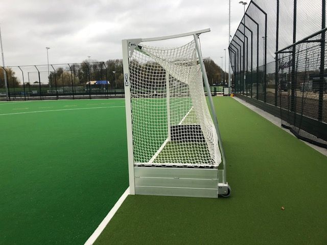 'We waren erg kritisch bij de aanschaf van de twee buitendoelen, omdat ze hufterproof moesten zijn, verplaatst moesten kunnen worden en een stevige geïntegreerde netbevestiging moesten hebben', vervolgt Vereecken. 'Ons onderhoudsteam is zeer kritisch als het gaat om netbevestiging. Het net moest gemakkelijk kunnen worden vervangen en stevig verankerd zijn. We hebben namelijk verschillende soorten doelen en bij sommige is het een heel gedoe om het net te vervangen. Het onderhoudsteam is met vier man sterk naar SKOR in Almelo gereisd om de doelen ter plaatse te beoordelen. Ze kwamen enthousiast terug. De gebruiksvriendelijkheid van het onderhoud van de netten was doorslaggevend bij de aanschaf. Bovendien is de hele club erg te spreken over de fraaie kleurstelling van het gele doel met zwarte netten. We hebben onze indoor EHL-doelen bij SKOR gekocht en waren zo tevreden, dat we ook onze outdoorhockeydoelen bij hen hebben besteld', vertelt Vereecken.