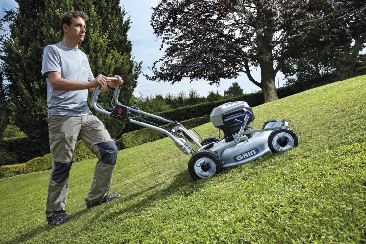 Alle Grin-grasmaaiers zijn gebouwd op een speciaal frame en zijn te gebruiken op hoog gras, nat gras, oneffen terrein enzovoort. De best verkopende professionele maaiers zijn de PM53A, de PM53A KW met oliepomp voor maaien op steile hellingen, de BM46A-82V-accumaaier en de SPM53A KW-ruwterreinmaaier. De maaiers zijn voorzien van professionele Briggs & Stratton- en Kawasaki-benzinemotoren en eveneens professionele 82V-accumotoren. Dankzij de professionele aandrijving kan er 1.000 à 2.000 vierkante meter per uur worden gemaaid, afhankelijk van de maaiomstandigheden. De constructie van deze grasmaaier is robuust en de professionele maaiers zijn standaard voorzien van een Grin-motorbeschermingskegel, waarmee de maaier op steenachtig en oneffen terrein maximaal beschermd is tegen schade.