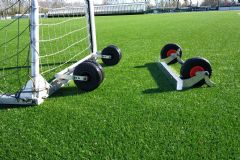 Het principe van de doelheffer is eenvoudig, maar effectief: een aluminium constructie met twee wielen die aan het doel wordt bevestigd, waarmee het doel eenvoudig opgetild en verplaatst kan worden. Gesjouw is niet meer nodig en scheuren in de mat behoren tot het verleden. Solidafix richt zich met de doelheffer niet alleen op pupillendoelen; de constructie past ook prima op grote doelen.