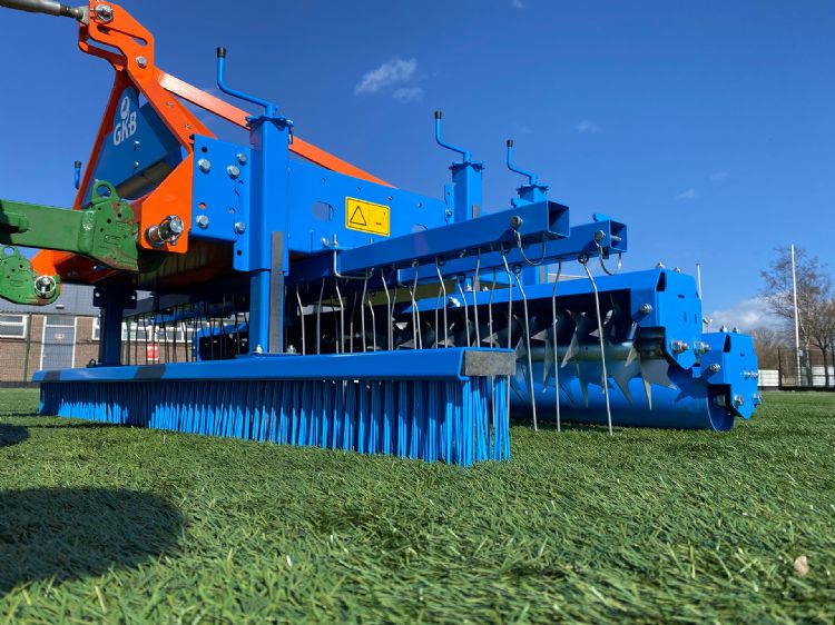 GKB pakt zelf flink uit op deze dag en neemt de volgende machines mee. De Combinator, dit is een freesmaaier annex verticuteermachine; de Ecodresser, voor het milieubewust dressen van sportvelden en golfbanen; de Sandspreader, een bezandingsmachine; de Combitool die verschillende bewerkingen kan uitvoeren, zoals borstelen, kriebeleggen, slitter/topbeluchten en rollen (zie ook artikel elders in deze uitgave); de Combiseeder, voor effectief inzaaien en doorzaaien; De VStrong om te verticuteren en tot slot de Deep Tine Aerator (DTA). Deze DTA is te vergelijken met een vertidrain en geschikt om diep te beluchten.