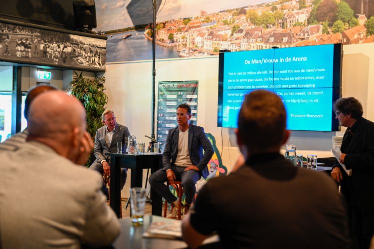 | Leon Vlemmings en Jan Rotmans, hoogleraar transitiekunde en duurzaamheid, vertellen over de klimaatneutrale wedstrijd, voorafgaand aan het duel. |