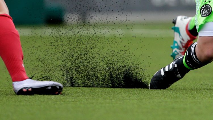 Onderzoekers berekenen dat kunstgrasveld jaarlijks 950 kilo granulaat kan verliezen |