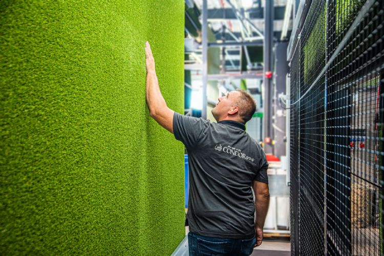 In de moderne fabriekshallen van Condor Grass in Hasselt worden kunstgrassystemen gefabriceerd met ultramoderne tuftmachines. Ook voor de sporten tennis en padel worden specifieke matten gemaakt.