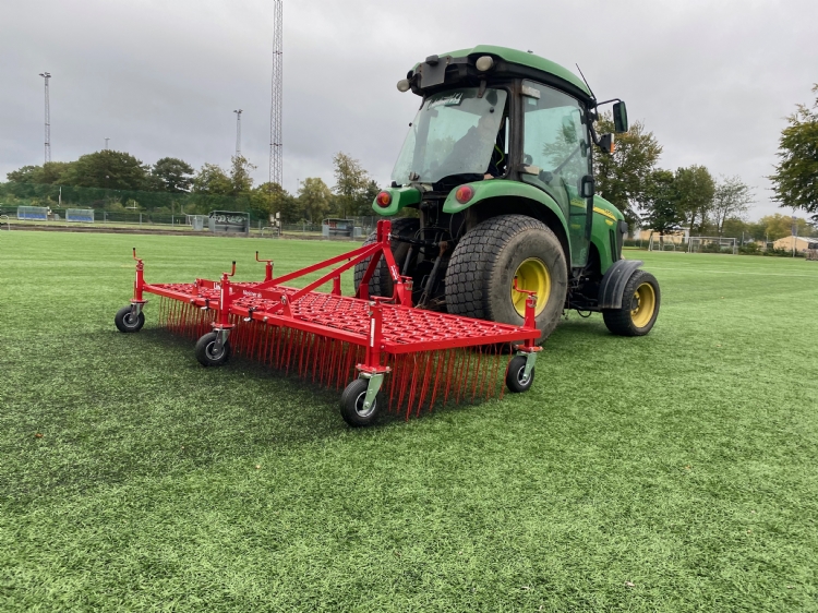De roterende pennetjes van de Spin-Rake zijn ideaal om de infill in kunstgrasvelden te de-compacteren