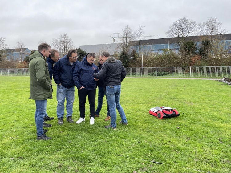 Kress instrueert medewerkers Milati en Dican Sport over robotmaaier |