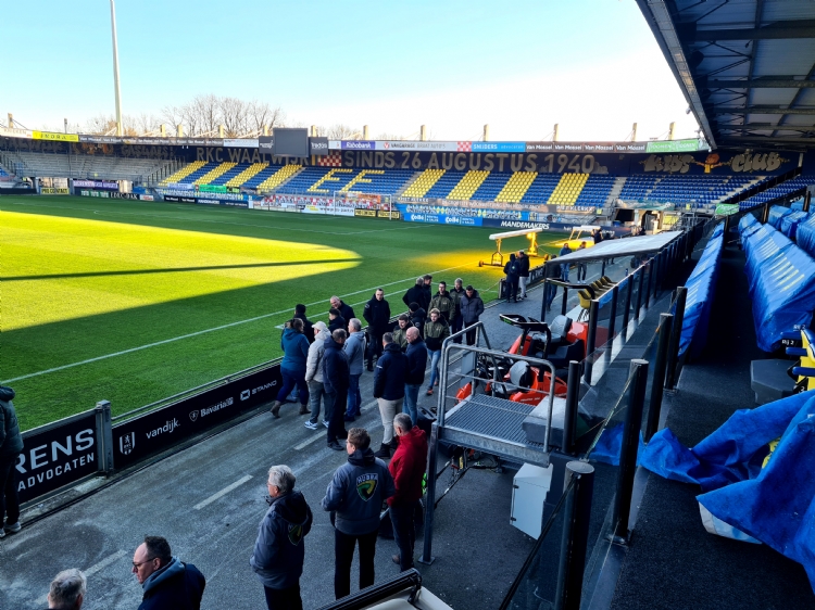 Vervolgens gingen de aanwezigen richting het veld om, ondanks de lage temperaturen en het bevroren gras, eens goed naar de grasmat te kijken en meer te horen over de specifieke werkprocessen van het team van RKC. Deze informatieve dag werd afgesloten met een welverdiend hapje en drankje, dat gelegenheid bood om bij te praten en ervaringen uit te wisselen.