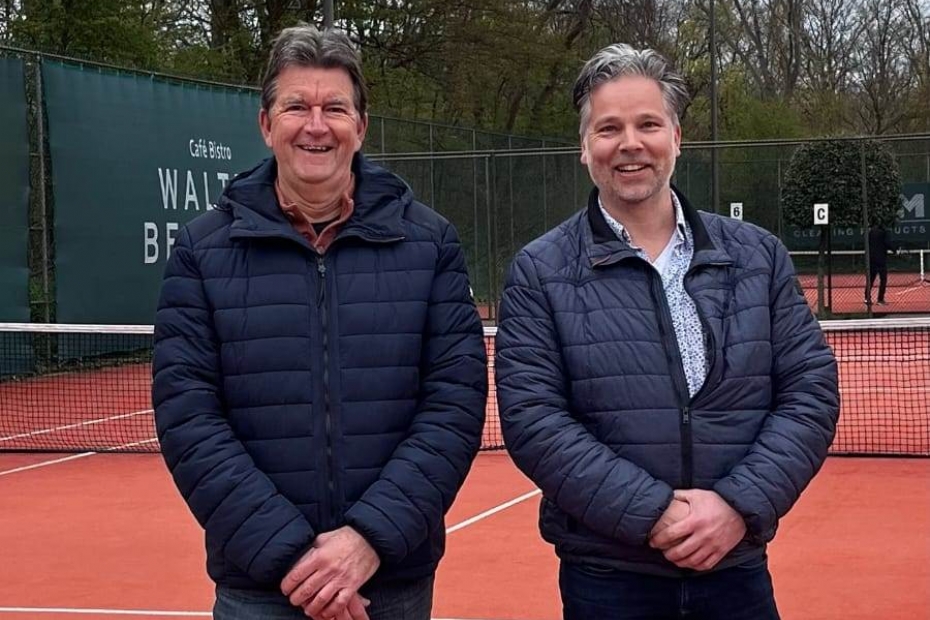 Loek de Gruiter van tennispark Thor de Bataaf en Gabriël Wolters, adviseur Noord- en Zuid-Holland Algavelan
