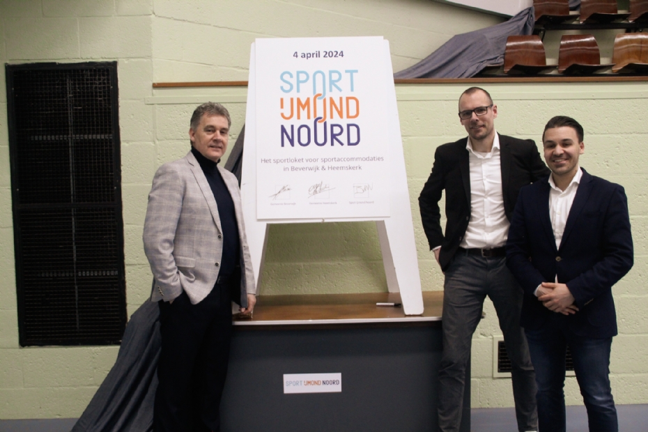 Sport IJmond Noord is 4 april officieel van start gegaan. Sportwethouders Ali Bal (Beverwijk) en Aad Schoorl (Heemskerk) en Bas de Wit, directeur Sport IJmond Noord, zetten hun handtekening onder de samenwerking.