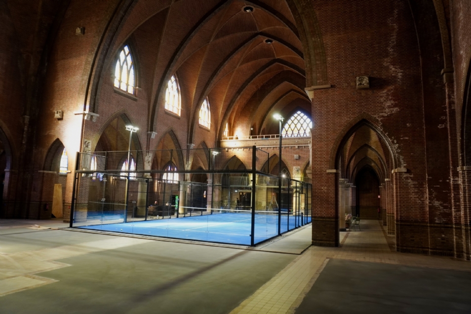 Padelbanen bevinden zich niet altijd op plekken die je direct verwacht. Aan de Rosendaalseweg 700 in Arnhem bijvoorbeeld is een kerk omgebouwd tot padellocatie. Via Holy Padel kunnen liefhebbers er een baan reserveren.