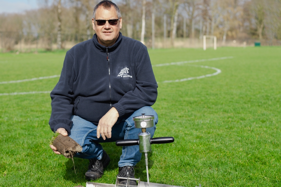In de gemeente Heusden beheert Lion van Logten zo'n vijftig sportvelden. Daar zijn kunstgrasvelden, hybride velden, hockeyvelden en atletiekbanen bij, maar ook 36 natuurgrasvelden. Die velden verzorgt Van Logten sinds een jaar of drie op een innovatieve manier. 'We werken met een mix van Engels raaigras en veldbeemd. Bij groot onderhoud zaaien we het door als mengsel. Je kunt het verschil vooral goed zien bij de doelgebieden. Die zijn op zo'n gemengd veld veel dichter begroeid dan als er alleen Engels raaigras had gestaan.'