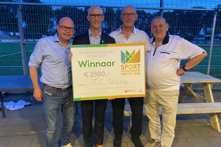 Voetbalvereniging FC Weesp is verkozen tot Sportaccommodatie van het jaar 2024. De andere genomineerden voor deze duurzaamheidsprijs van NOC*NSF en het Kenniscentrum Sport & Bewegen waren hockeyclub Hudito in Delft, korfbalvereniging KV Sparta in Zevenhuizen, omnisportvereniging SF Deinum en Sportpark De Eendracht in Amsterdam. De winnaar ontving een cheque ter waarde van 2.500 euro om verdere verduurzaming te financieren. De overige genomineerden ontvangen elk een cheque ter waarde van 1.500 euro. De jury, bestaande uit Bert van Oostveen (Kenniscentrum Sport & Bewegen), Irene Eijs (NOC*NSF), Judith Maas (SDG Nederland) en Remco Hoekman (Mulier Instituut), heeft de genomineerden beoordeeld. Bij deze jubileumeditie van de verkiezing zag de jury dat het niveau van verduurzaming enorm is toegenomen bij de deelnemers aan de verkiezing. Bij winnaar FC Weesp kwam dat het best tot uitdrukking. Uit het juryrapport: 'De visie en ambitie van FC Weesp komen tot uitdrukking in het aanpassen van de doelstelling van de vereniging en het betrekken van de buurt daarbij. Ze hebben een brede blik op financiële mogelijkheden en subsidiekansen en zorgen voor verbinding in Weesp.'