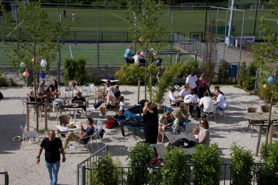 Tijdens het hele transitieproces is de inzet van vrijwilligers van groot belang, benadrukt de voorzitter, die deze functie uiteraard zelf ook als vrijwilliger vervult. 'Zonder vrijwilligers lukt het niet. Vijf jaar geleden waren er maar 20 vrijwilligers actief; nu zijn dat er zo'n 250 op een ledental van ruim 1.100.' De onmisbaarheid die voor vrijwilligers geldt, is ook van toepassing op de oude garde van gepensioneerden die actief zijn in het beheerteam en samen met de gemeente de vier velden onderhouden. 'Dat gebeurt in goed overleg en goede samenwerking, alles zonder bestrijdingsmiddelen en bemesting. Het nieuwe hoofdveld blijft natuurgras: fijn voor de voetballers, maar ook goed voor het milieu. Het wordt nu opgehoogd en voorzien van nieuwe drainage, zodat er weer een strak veld ligt bij de start van de competitie.' Het vijftien jaar oude complex bestaat in totaal uit vier velden. Uitbreiding met een vijfde veld staat in de planning.