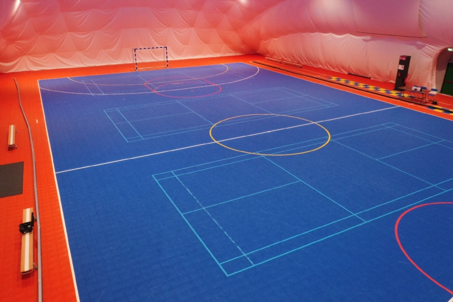 Deze hal met een nokhoogte binnenmaat van maximaal 11 meter en een vloeroppervlakte van 1.500m² (30 bij 50 meter) heeft jarenlang voor veel sportplezier gezorgd. Naast de blaashal staan units voor omkleden, douches en toiletten. De twee accommodaties worden als twee separate kavels los van elkaar op de veiling aangeboden.