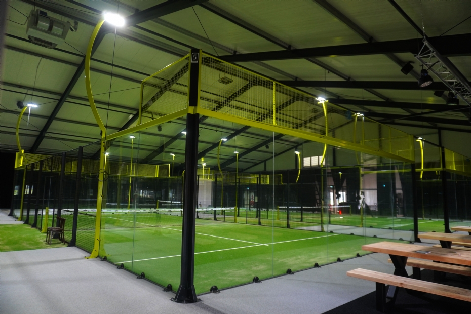 Jorden Kallenbach duikt eerst in het achterliggende verhaal over de totstandkoming. 'In het verleden hebben we voor de toenmalige padelclub twee mobiele padelbanen geplaatst bij Jan Langedijk, een bloembollenleverancier in Venhuizen. Het bedrijf had een loods over, waar we mobiele platen hebben gelegd die niet vastgezet werden in de ondergrond. Deze padelbanen bleken een succes te zijn en de padelclub kwam bij ons terug met de vraag om er meer aan te leggen. Inmiddels zijn de twee mobiele banen overgeplaatst naar de nieuwe hal en zijn er vier nieuwe banen bij gelegd. Daarnaast zijn er voor de winterperiode ook drie indoor tennisbanen aangelegd om meer te kunnen aanbieden dan alleen padel. De nieuwe eigenaren geloven in het concept met de combinatie van padel en tennis.'