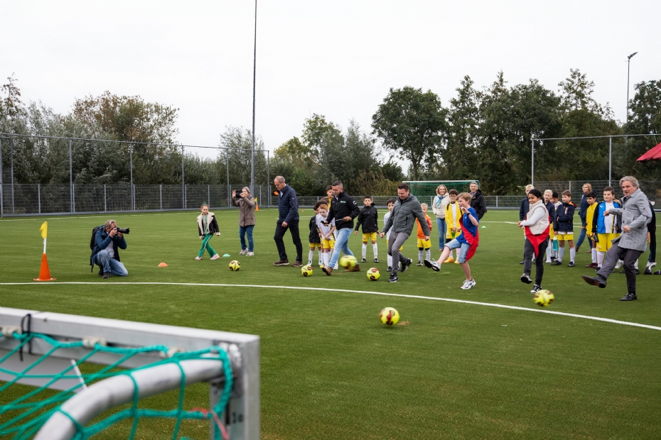 De opening van het veld vond plaats onder toeziend oog van diverse genodigden, waaronder veel leden van SV DONK. Wethouder Michiel Bunnik nam samen met de kinderwethouders Rens (Duurzaamheid) en Diyae (Sport) penalty's in doeltjes met daarop de duurzaamheidsdoelstellingen die met dit project worden behaald. Daarmee werd het nieuwe veld officieel in gebruik genomen. 'In Gouda vinden we sport en duurzaamheid heel belangrijk. Wat mij betreft is deze techniek dan ook een perfecte combinatie. Ik ben er ontzettend trots op dat we in Gouda deze primeur hebben gerealiseerd', aldus de wethouder.