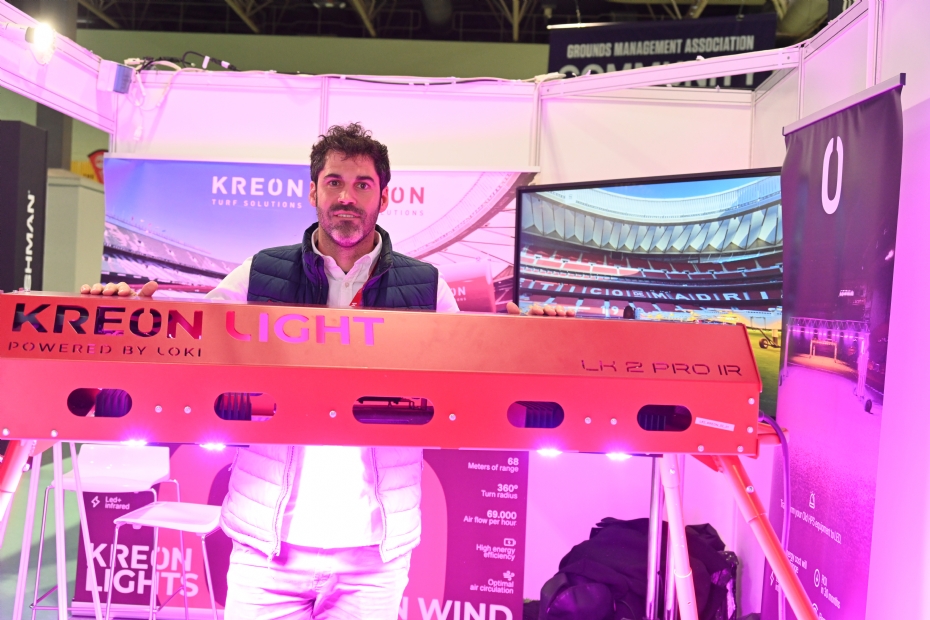 Als uitdager Stogger een opmerking maakt dat de markt voor stadionverlichting inmiddels het led-aan-led-uit stadium is gepasseerd en toe is aan een meer variabele benadering van de inzet van licht, doelen zij natuurlijk op de manier waarop marktleider SGL zichzelf in de markt zet. Sales support manager Arno Hovenga van SGL wil het wel even uitleggen. Het heeft natuurlijk even geduurd voordat SGL volmondig afscheid nam van de bekende HPS-lampen (High pressure Sodium). Dat afscheid is natuurlijk onvermijdelijk, omdat in de komende jaren deze lampen ook niet langer leverbaar zullen zijn. SGL is overtuigd van een lichtspectrum dat gebruik maakt van 95% rood en 5% blauw licht voor een hoge kwaliteit grasgroei. En dat op een zo energiezuinige manier als mogelijk. . Hovenga van SGL meldt dat hun leds de ultieme en wetenschappelijk bewezen verhouding tussen blauw en rood licht geven. De belangrijkste innovatie van SGL op de beurs is een verdere doorontwikkeling van data-analysesysteem, dat fieldmanagers 24/7 toegang geeft tot de belangrijkste veldwaardes. ‘Energy monitoring’ is een van de nieuwe functies van de portal. Deze functie geeft clubs inzicht in het energieverbruik van de belichtingsunits en helpt om efficiënt om te gaan met tijd en middelen. Met de ‘Lighting’ functie schakelt de groundsman de belichtingsunits op afstand aan en uit en ontvangt advies voor het optimaal gebruik van de units. De nieuwe portal zal naar verwachting begin 2025 gelanceerd worden.