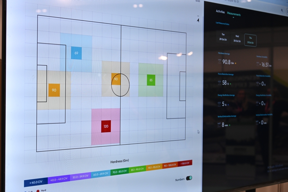 Een beurs is waardevol, omdat je dan hel snel verschillende aanbieders van een bepaald systeem kunt laten zien, bijvoorbeeld op gebied van stadionverlichting, maar ook op het gebied van gespecialiseerde software. Het bedrijf Turf Coach ontwikkelde een systeem waarmee je onder andere kunt monitoren hoe vaak je bepaalde machines kunt inzetten. Kevin Krieger van dit bedrijf legt uit. De machines worden voorzien van een QR code. Als je die scant met je smartphone, houdt dat in dat je een bewerking hebt uitgevoerd. Turf Coach combineert deze gegevens met tal van sensoren. Zoals bijvoorbeeld van een Deltec Field Tester, maar ook andere Deltec testunits. Het resultaat is dat je een overall beeld van je veld hebt en daarmee je beheer kunt organiseren.