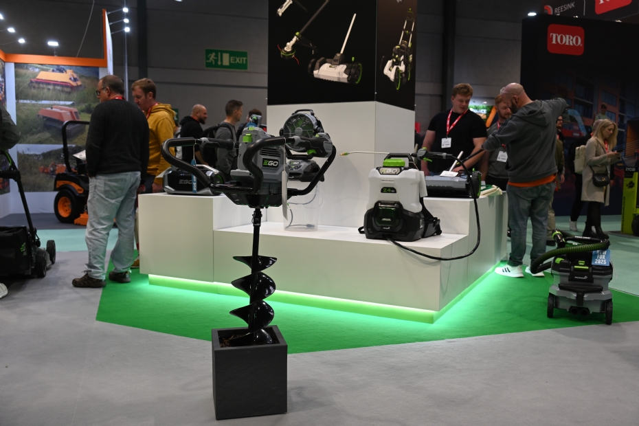 Minder relevant voor een fieldmanager, die op zoek is naar de laatst stand van de Groundscare techniek, maar zeker niet onbelangrijk zijn de verschillende aanbieders van accu handtools. Zoals Ego dat in Nederland wordt gedistribueerd door Stierman de Leeuw. Op de Ego stand vonden we onder andere de nieuwe Ego grondboor en de sterkste handheld accu bladblazer die op de markt zou zijn: de LBX1000. Een accubladblazer voor de professionele doelgroep. Deze is zo krachtig dat deze is uitgerust met een tweede handgreep. Met zijn blaaskracht van 32 newton en een volume van 1700 kubieke meter per uur is dit de meest krachtige accubladblazer die momenteel op de markt verkrijgbaar is.