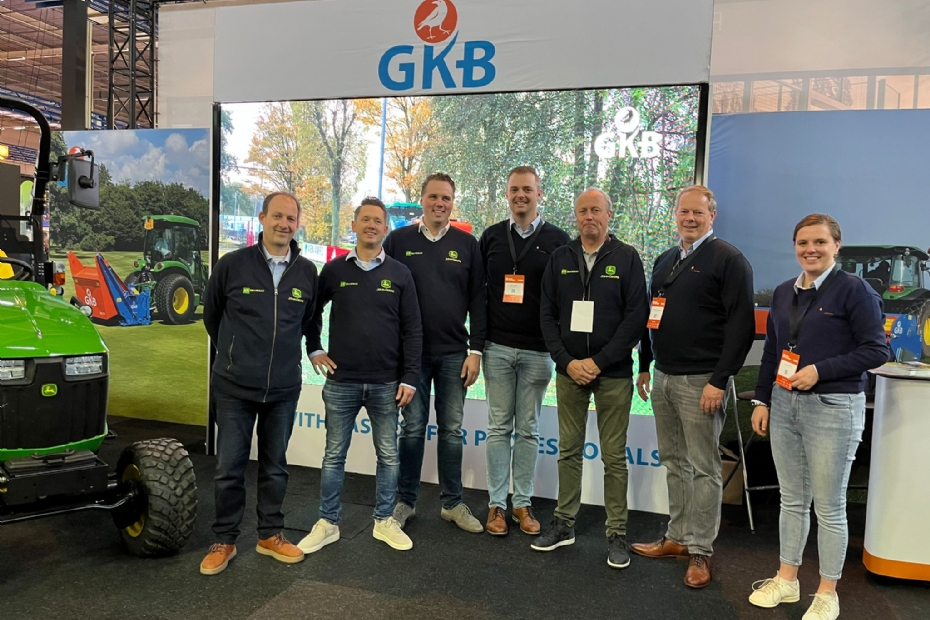 Op de gezamenlijke stand van GKB en Kraakman ontbreekt de nieuwe combislit maar op het levensgrote scherm erachter zie je hoe de gezamenlijke machines de sportvelden piekfijn onderhouden. De Combislit is een recente toevoeging aan het GKB assortiment en wordt beschouwd als de opvolger van de Topair.