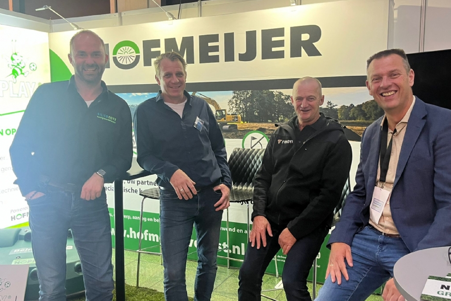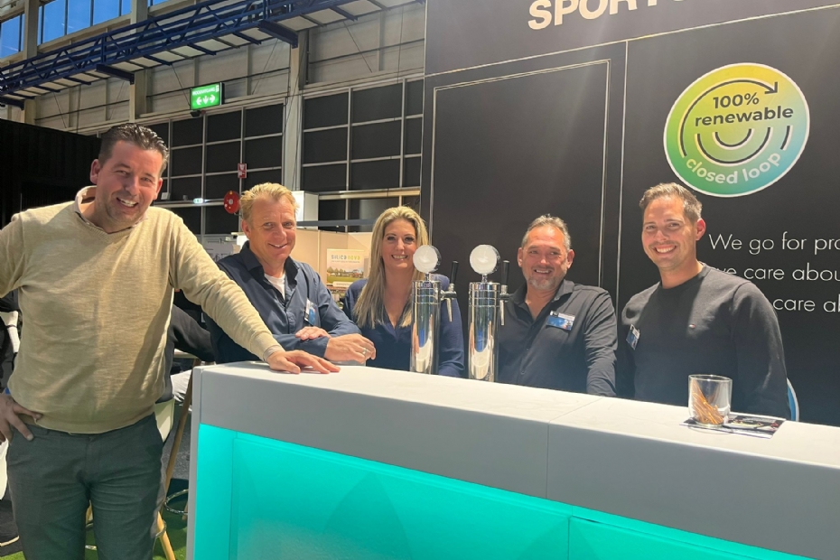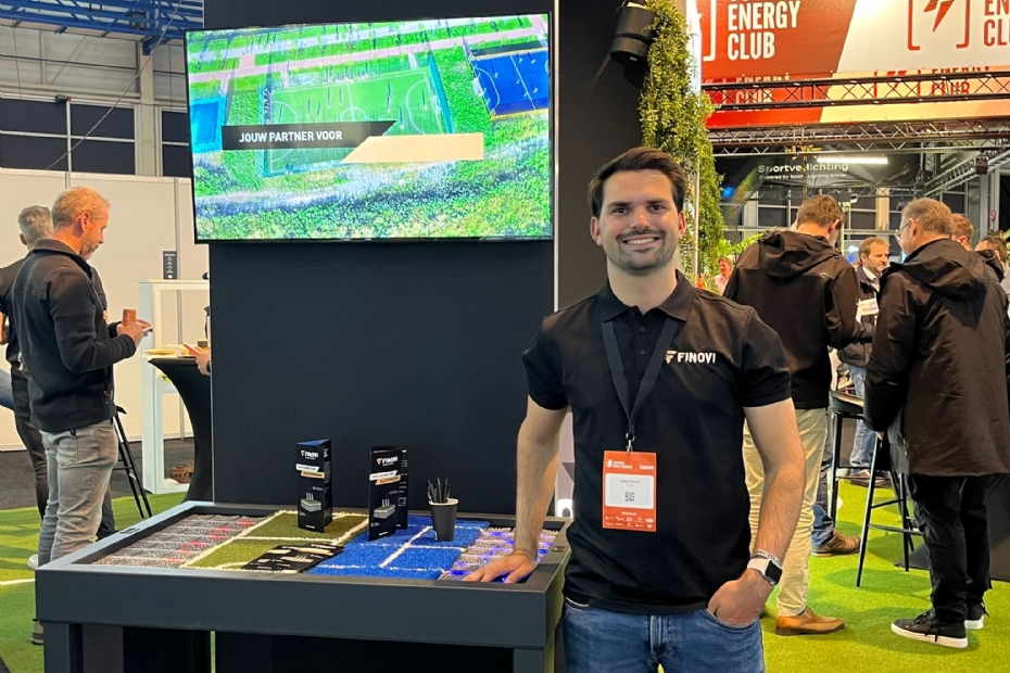 Drukte bij de stand van Finovi waar Ralph Simons poseert naast het collectorveld, hiermee onttrek je als club warmte uit het kunstgrasveld voor je energiebehoefte. Inmiddels lopen de eerste pilotprojecten in Nederland zoals het eerste voetbalveld wat afgelopen september in Zaanstad is gerealiseerd. Hierbij wordt gebruik gemaakt van subtiles met subtubes van Supersub om de warmte onder het veld te “vangen” zonder in te boeten op speelcomfort.
