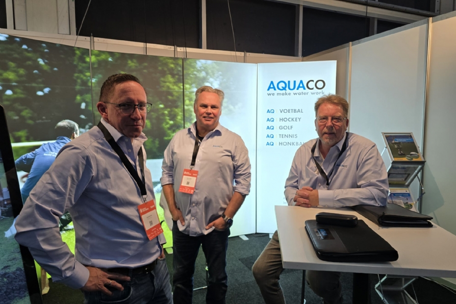 Armand Vree, Chiel Hubers en Henno den Engelse, van Aquaco. Aquaco heeft in Amsterdam Stadsdeel 2 een aanbesteding gewonnen voor het onderhoud van de beregeningsinstallatie van alle sportvelden in het stadsdeel.