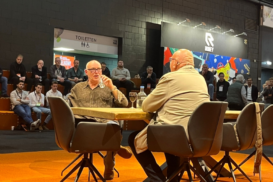 Laatste uurtje van de beurs is vooral netwerken onder standhouders op de stand van Hofmeijer vinden we Bastiaan Doornewaard van Silica Nova, Wilbert Hogeweij van Domo Sports, Hans Pennings van Finovi en uiteraard Jacco Meijerhof.