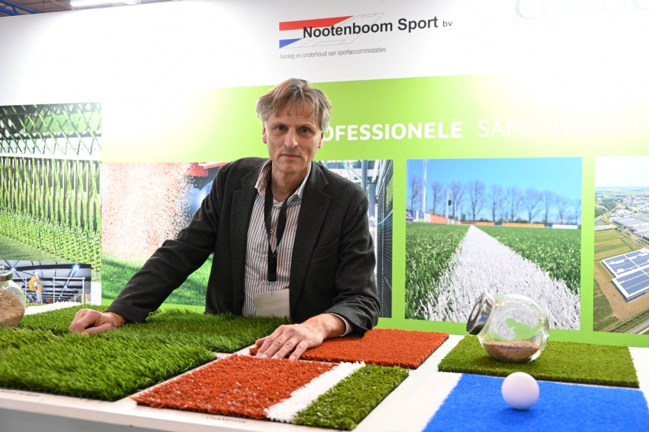 Dick Nootenboom van Nootenboom Sport had een gedeelde stand met Condor Grass en wist al te verklappen dat er zeer binnenkort een aantal nieuwe kunstgrassoorten zitten aan te komen. Deze zijn nog niet goedgekeurd voor de NOC*NSF Sportvloerenlijst dus hij wil er niet teveel over zeggen maar het gaat onder andere om noninfill en dryhockey.