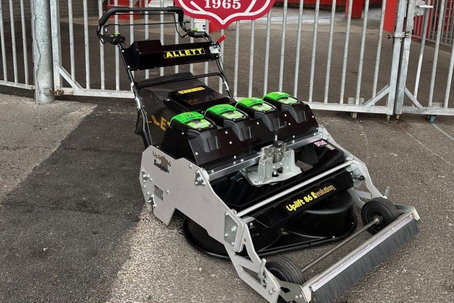 De Allett Uplift 86 Evolution is een accu-aangedreven machine. Deze machine is gemaakt voor het schoon zuigen van het veld die is ontstaan door speelschade.