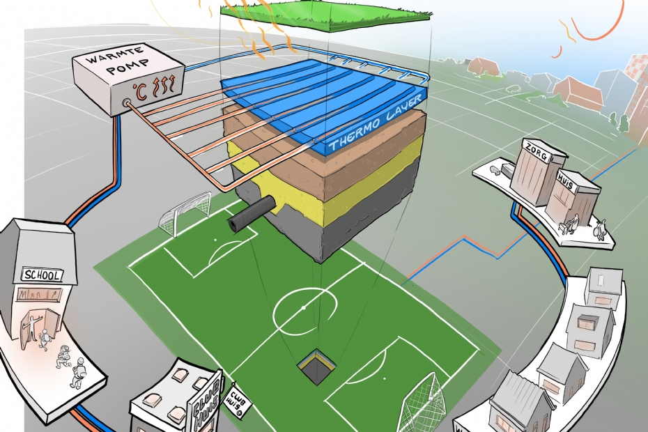 Domo Sports Grass heeft een eigen warmtewinningssysteem ontwikkeld dat toegepast kan worden onder kunstgrassportvelden. De naam luidt: Domo Thermolayer. 'Het biedt een unieke kans om de warmte die anders verloren zou gaan, efficiënt te benutten', zegt Bas Reinds, vestigingsdirecteur Nederland.
