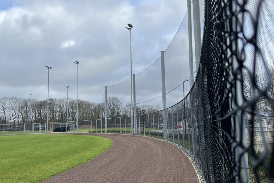 'Het softbalveld kwam na de herinrichting aan de rand van de parkeerplaats te liggen. Rondvliegende softballen en geparkeerde auto's zijn meestal geen gezonde combinatie, dus hebben we daar een ballenvanger geplaatst van 10 meter hoog. Deze is uit te breiden naar 15 meter om een slag om de arm te houden,' aldus Jeroen van de Ven van Newae.