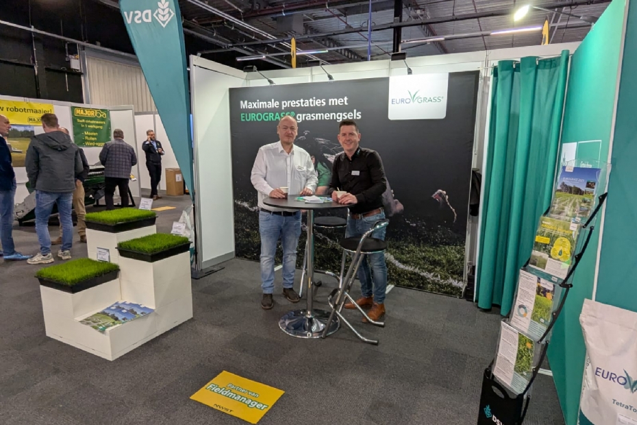 Mark Timmerman en Ron Bakker van ProGrass gebruiken de beurs vooral om hun relaties te onderhouden