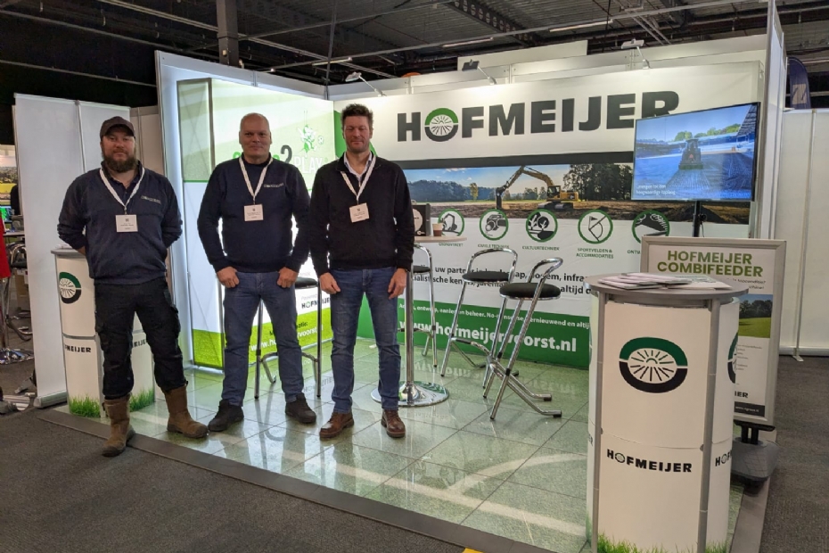 Hofmeijer Voorst wordt vertegenwoordigd door Johan Ruiterkamp, Edwin van de Beeten en Erwin Pol. Het bedrijf kan volledig in eigen beheer alles verzorgen: van aanleg tot onderhoud. 'Wij gebruiken ook robots bij het onderhoud om gemeentes en verenigingen te ontzorgen.'